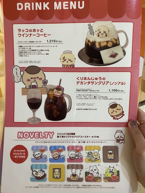 ちなみに上記のお飲み物メニューにはランダムコースターが1枚づつ付く。